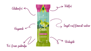 Protein från växtriket, naturligt sötad med dadlar och doppad i mörk choklad. Goda på riktigt