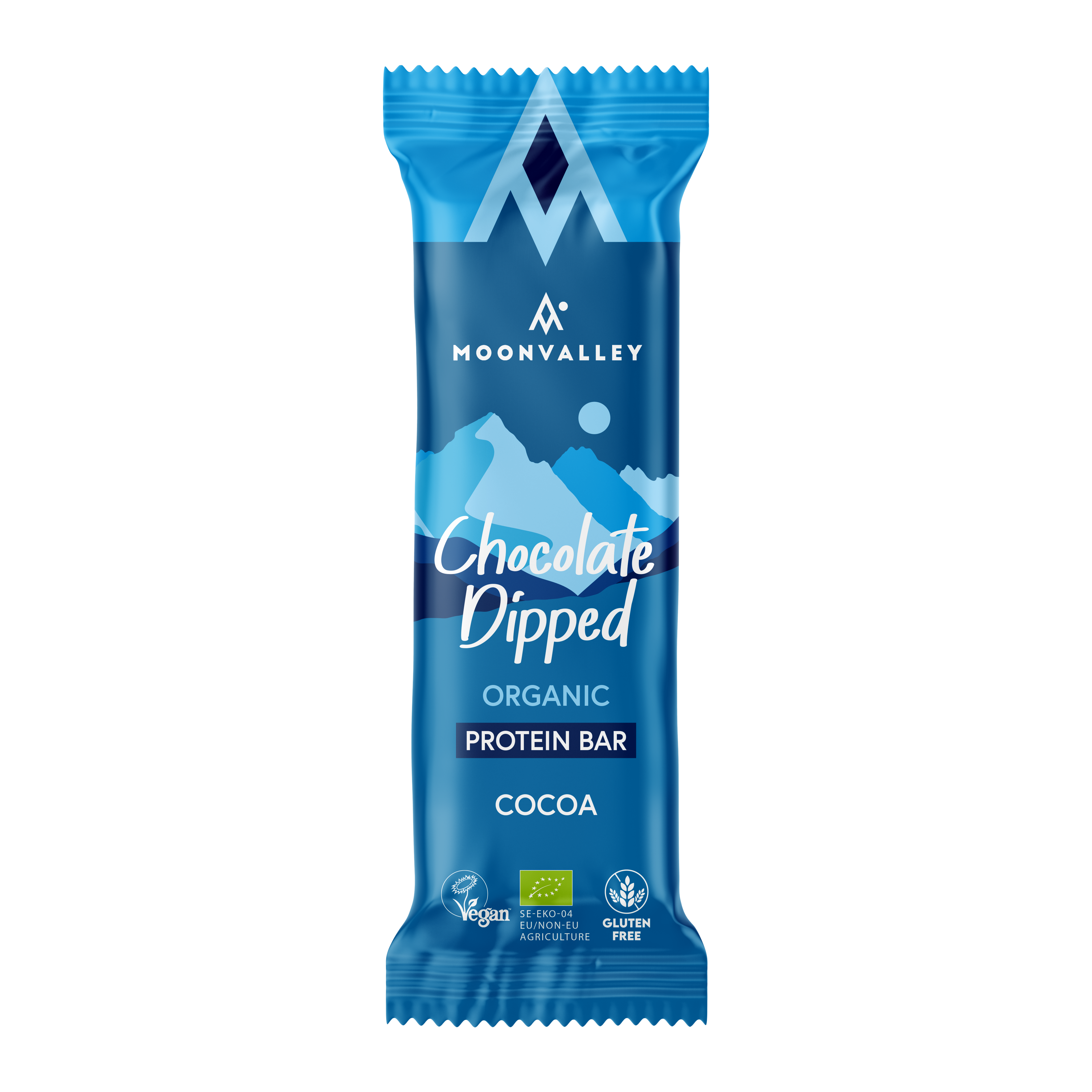 Unna dig hela 12 lyxiga Moonvalley moments med våra veganska kakao-proteinbars doppade i choklad!